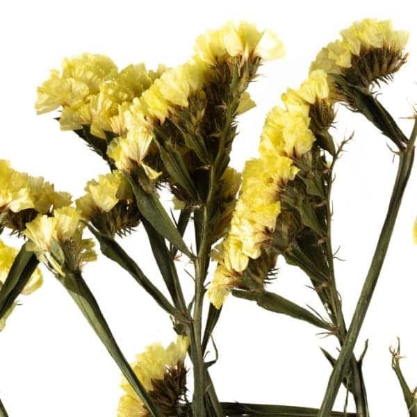 A dried flower, not preserved, the Statice Sinuata has winged, paper-like flowers. The cluster of petals fan upwards from thick, flat stems adding shape and softness to dry floral arrangements.